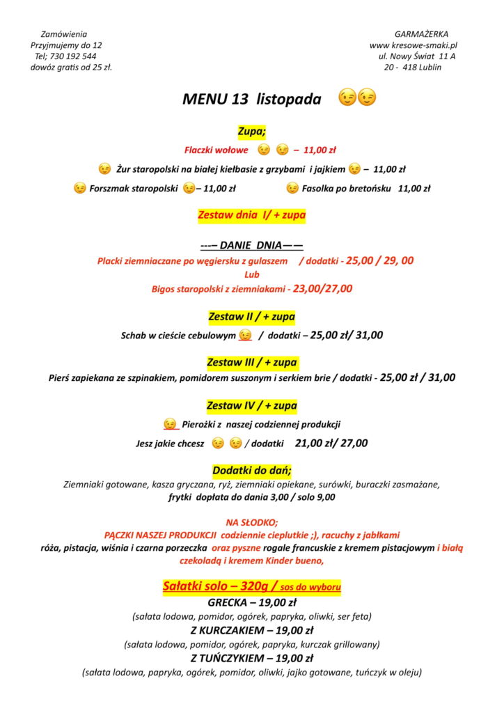 menu 13 listopada