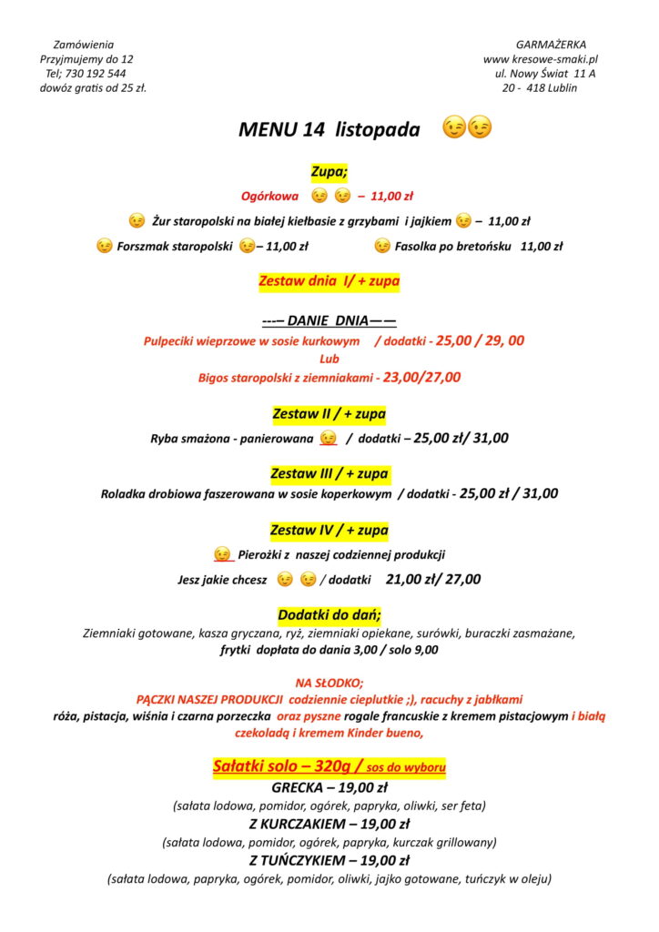 menu 14 listopada