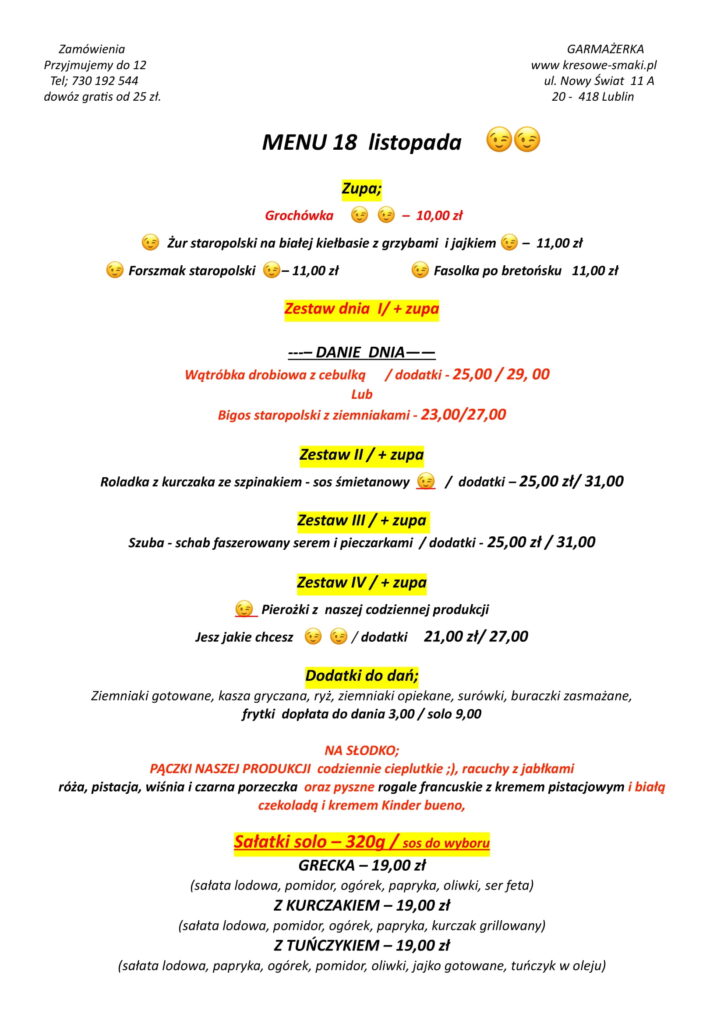 menu 18 listopada