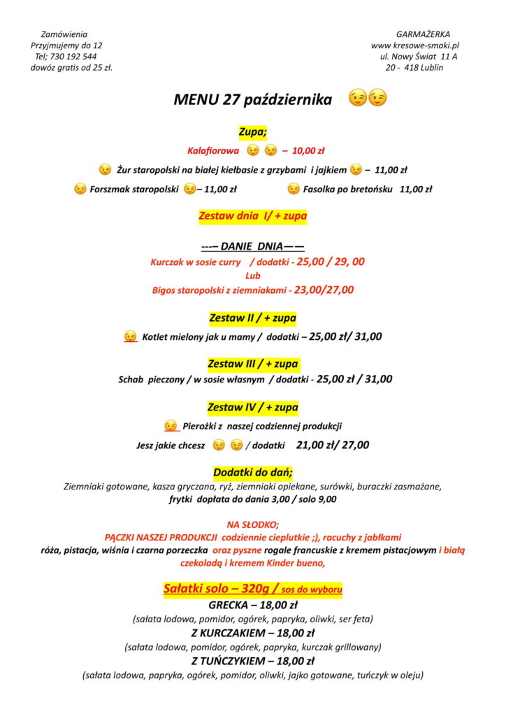 menu 27 października