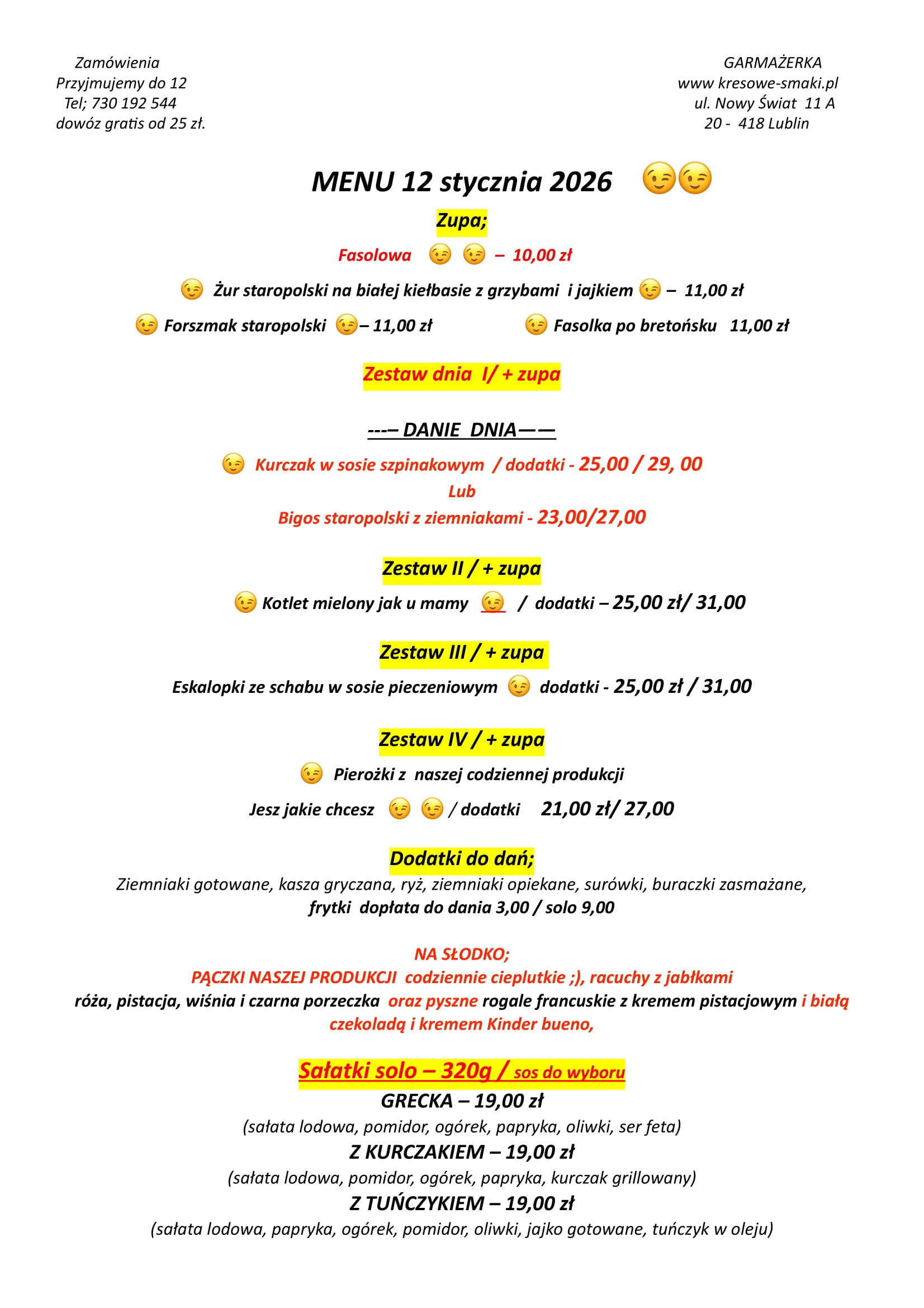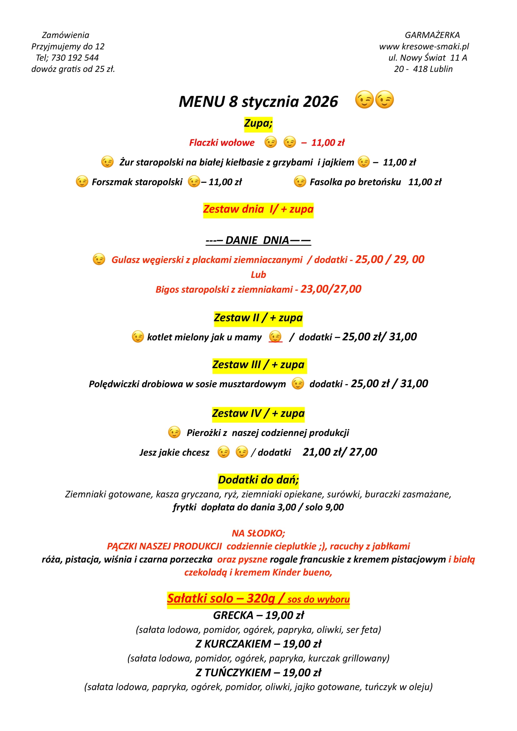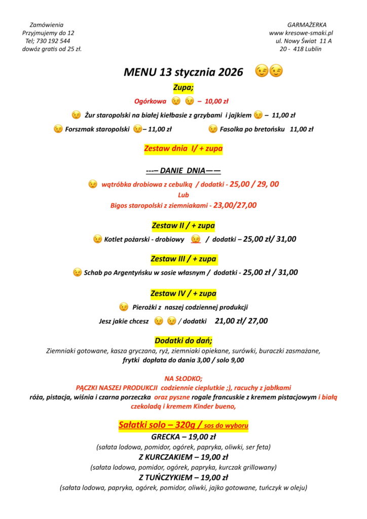 W dniu dzisiejszym 7 stycznia – garmażerka będzie nieczynna – przepraszamy 7 stycznia 2026 Aktualności Czytaj dalej...